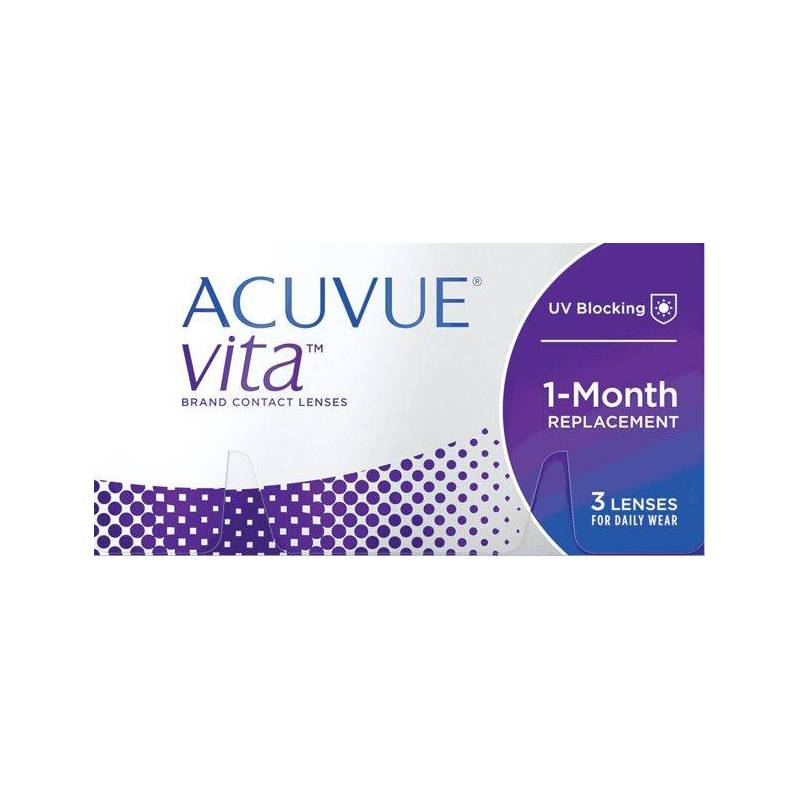 Pack de 3 lentillas mensuales ACUVUE® VITA™, la lentilla más cómoda del mercado durante todo el mes de uso.